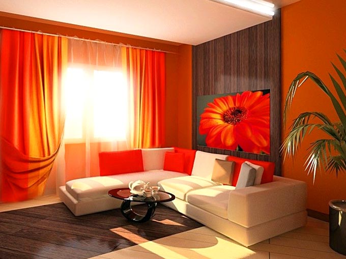 - Orange. Bunte orange Vorhänge passen erfolgreich in den Kindergarten oder in die Küche. Die Hauptsache ist, es nicht zu übertreiben, weil es die wärmste Farbe im Spektrum ist.