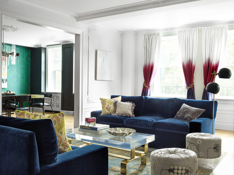 Vorhänge leicht über den Greifer gesammelt, sie sehen voluminös und luxuriös aus.. Bitte beachten Sie, dass der Designer die Haken in verschiedenen Höhen platziert hat, was den Raum interessanter macht. Die Versammlungen sind ordentlich und eben und das Fenster ist eleganter. Sie können die Verwendung von Magnethaltern annehmen.