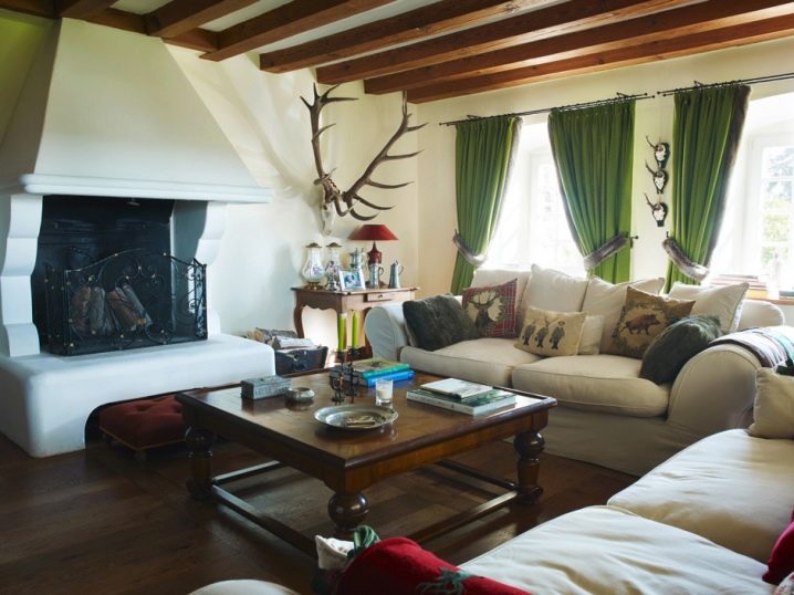 Die Verwendung von ungewöhnlichen natürlichen Materialien ist nicht auf Holz und Leder beschränkt. Das Foto zeigt eine Variante von Reißzwecken aus Fell. Durch die Wahl der unaufdringlichen Farbe gelang es dem Designer, sie harmonisch in ein so helles Interieur zu integrieren, ohne es zu überladen.