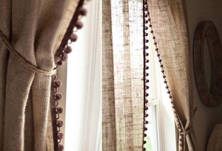 Besondere Aufmerksamkeit sollte den Elementen zur Befestigung geschenkt werden. Zum Beispiel müssen Produkte mit Haken und Ringen vor dem Reinigen von den Traufen entfernt werden. Derselbe Moment betrifft Modelle mit Ösen und Vorhängen, für deren Dekoration eine Bande verwendet wird.
