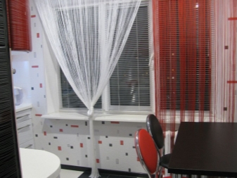 - Gitter. Das Material hat eine Gitterstruktur. Dank seiner Eigenschaften ist es ideal für den Einsatz in der heißen Jahreszeit und lässt viel Sonnenlicht und Luft durch. In Kombination mit Stoffvorhängen mit einem hellen Blumenmuster wird es in der Küche toll aussehen.