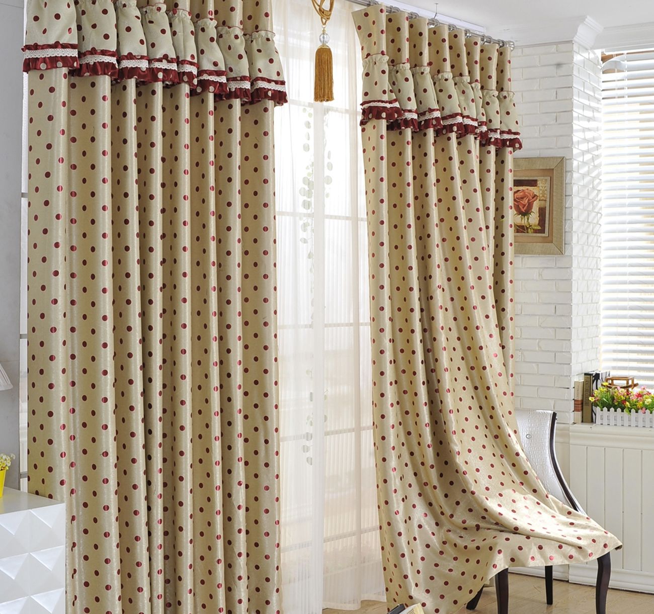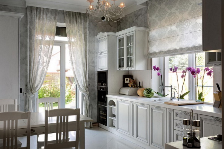 Licht Vorhänge sind mit allen Arten von Rüschen verziert, Stickerei und Guipure, weichen gedeckten Farben sind für sie ausgewählt, wie Rosa und Weiß, Perlen, Beige und alle Schattierungen von warmem Weiß. Sie sind mit hellen Vorhängen aus kostbaren Stoffen wie Brokat, Seide und Satin dekoriert und mit Rüschen, Pflanzen, Monogramm und floralen Mustern verziert.