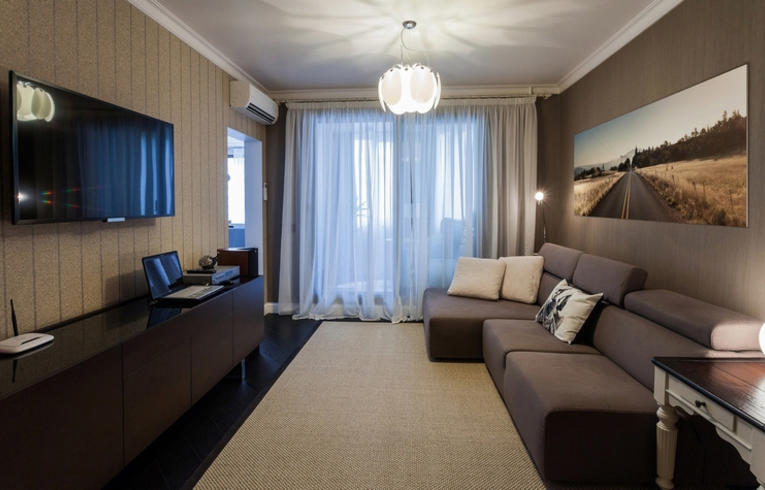 Einer der beliebtesten Stile im Moment. Der Stil ist in erster Linie funktional, ohne Anmaßung, daher wird das Dekor im Raum extrem zurückhaltend und minimiert. Der Konstruktivismus zeichnet sich durch strenge Linien und Formen aus, die durch die eingebauten Möbel in den Wänden platzsparend sind, und natürlich spielt die Beleuchtung des Raumes eine besondere Rolle.Viele Designer bevorzugen riesige Panoramafenster im Boden, der fast die gesamte Wand einnimmt.