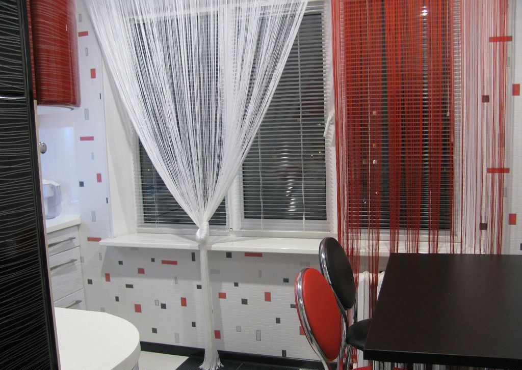 - Kisey. Vorhang, der eine Reihe von separat hängenden Fäden ist. Besonders beliebt ist jetzt solcher Tüll mit einer dekorativen Stickerei auf der Oberseite. Zusätzlich zu den Fenstern wird es in der Tür gut aussehen.