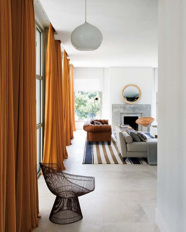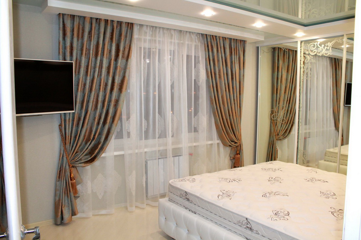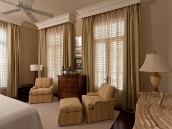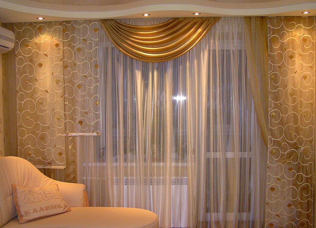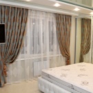 Symmetrie hat die Liebe von Designern seit langem gewonnenSie ging nicht herum und Fensterdekoration. Spiegelgedeckte Vorhänge sind im Raum mit mehreren gleichartigen Fenstern in Räumen mit Erkerfenstern weit verbreitet.Sie können auch zwei Leinwände an den Seiten des zentralen Tülls platzieren, was die Eigenschaften des Raumes noch unterstreicht.
