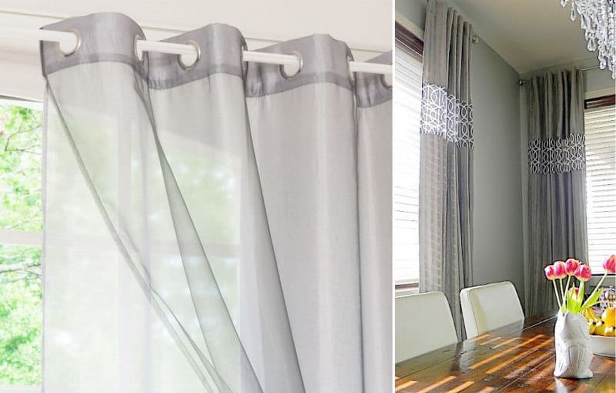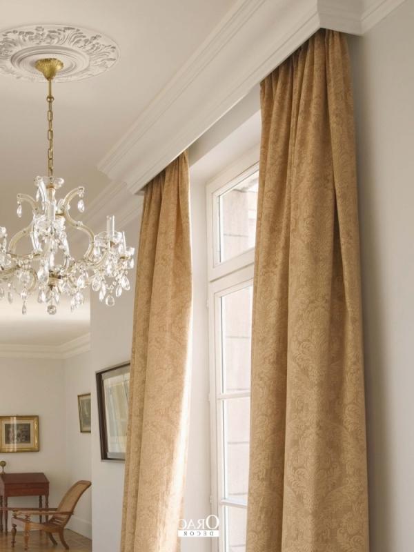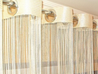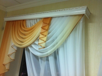 Deckenmodelle helfen, das Problem der niedrigen Decken im Raum zu lösen. Tüll an der Decke Gesims hängen an Haken, und um die Höhe optisch zu erhöhen, wählen Sie die Länge von Decke zu Boden. Sie können sogar die Stofffalten auf dem Boden absenken, wodurch der Raum weich und bequem wird. Auf dem Gesims der Metallschnur es ist möglich, nur ein sehr leichtes Gewebe wie einen Schleier oder Organza in einer einzigen Schicht zu befestigen. Die Leichtigkeit und Schwerelosigkeit des Designs erlaubt es nicht, das Bild des Fensters mit dicken Vorhängen zu ergänzen. Tubular und Baguette Gesimse mehr als ein Element der Dekor Zimmer verwendet. Auf einem runden röhrenförmigen Gesims ist das Gewebe mit Ringen oder Ösen befestigt - Metallelemente, die an den Löchern in der Leinwand des Gesims haften. Diese Befestigungsart sieht wunderschön aus, zudem sind die Ringe angenehm zu tragen.