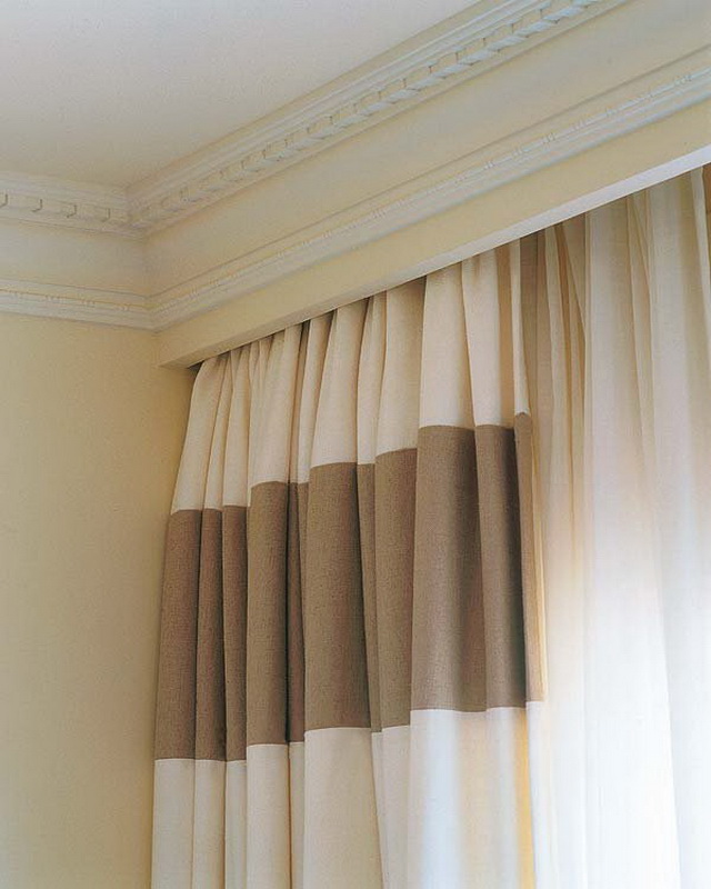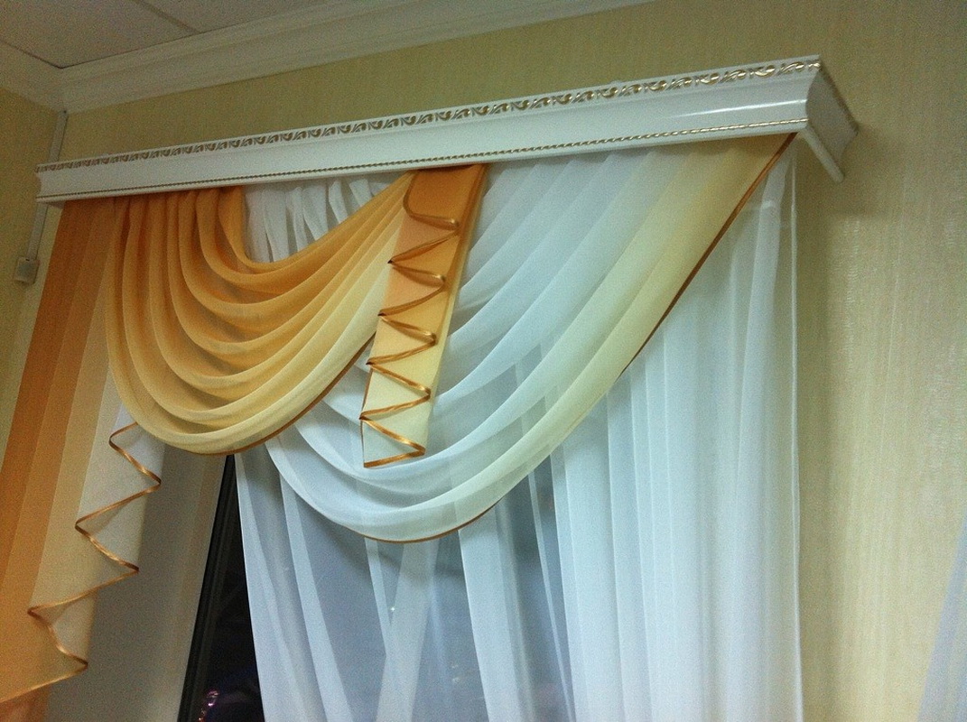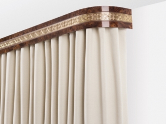 Wie der Tüll auf dem Fenster aussehen wird, bestimmt weitgehend das Gesims. Die Traufe kann sowohl Befestigungsfunktionen ausführen, als auch dekorativ. Wenn das Gesims ausschließlich dazu verwendet wird, Tüll darauf aufzuhängen, kann es vollständig in einer Nische hinter dem Formteil verborgen werden. Je nach Befestigungsgrad können die Gesimse unterteilt werden in: