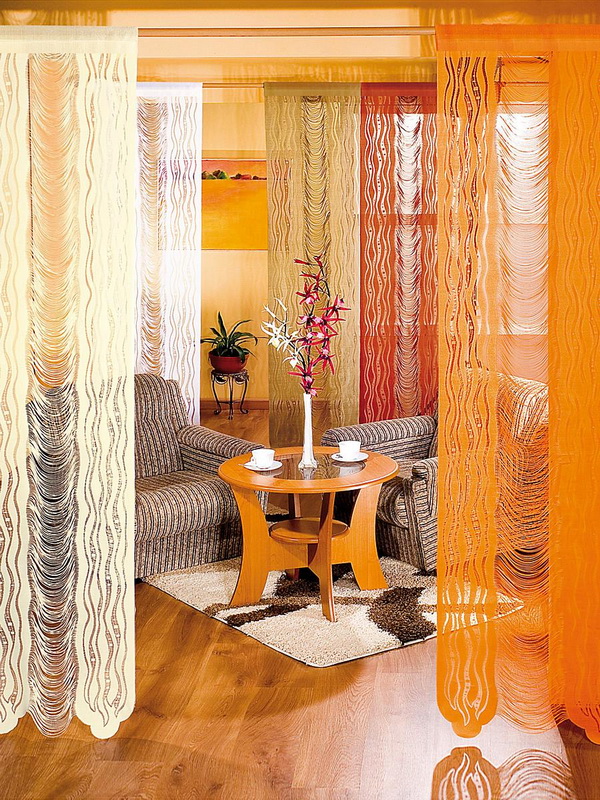 Organza gilt als der Liebling der Designer. – es behält seine Form gut, es knittert nicht, aber bei all seiner Starrheit verleiht es dem Raum ein Gefühl von Leichtigkeit und Komfort. Organza ist aus Seide oder synthetischen Garnen nach der Methode der engen Verdrillung hergestellt. Diese Art von Tüll erlaubt keine direkten Lichtstrahlen, hat eine hohe Verschleißfestigkeit, absorbiert keine Gerüche und zieht keinen Staub an, und ist in einer normalen Waschmaschine leicht zu waschen.Um den Raum zu dekorieren, können Sie eine Version von Organza aus natürlichen Fasern wie Seide und Viskose wählen. Um die Kosten der Fensterdekoration zu verringern Hersteller bieten Tüll aus künstlichen Materialien wie Polyester. Aber es ist notwendig, eine Reservierung zu machen, nicht-natürliches Material kann eine Allergie provozieren.