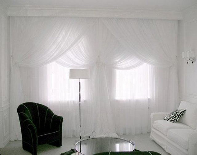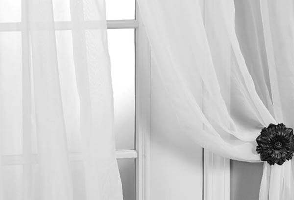 Ein anderes gemeinsames und schönes Material zur gleichen Zeit ist der Schleier. Dickes Gewebe, ergänzt mit Leinengewebe, verleiht Heimtextilien ein repräsentatives Aussehen. Voile Tüll lässt sich besonders im Waschprozess leicht beschädigen. Deshalb wird empfohlen, das Material von Hand mit Blau oder Stärke zu reinigen.