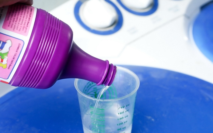 Im ersten Fall ist es notwendig, 1 Teelöffel zu verdünnen. bedeutet in 8 l warmem Wasser. Folgen Sie vorsichtig, um Klumpen zu vermeiden. Andernfalls bleiben Flecken auf dem Stoff.