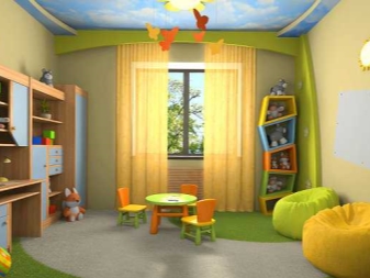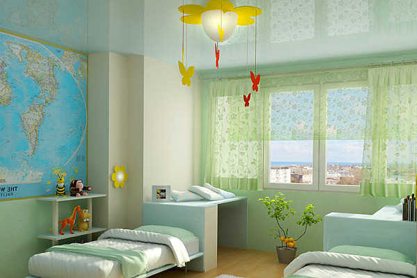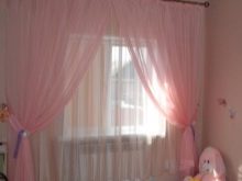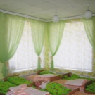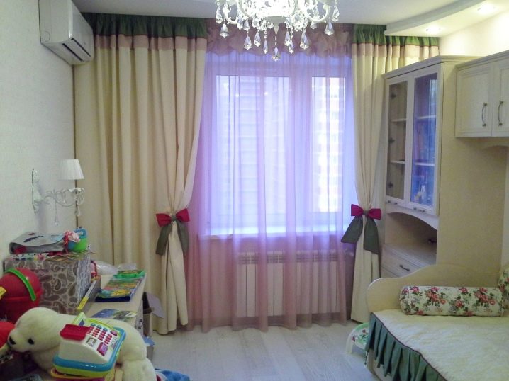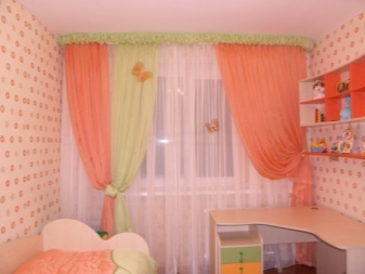 - Im Kinderzimmer Sie müssen umweltfreundliche Materialien auswählen, die haltbar und formstabil sein müssen. Solche Vorhänge sollten unbedingt Licht und Luft durchlassen, aber nicht Staub sammeln. Deshalb müssen Sie am Fenster des Kinderzimmers die Vorhänge aus Organza oder Netz mit Baumwollfasern aufhängen.