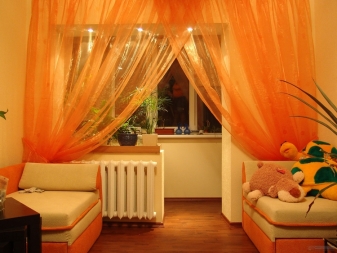 - Also für Wohnzimmer Gesättigte Farben und komplizierte Muster genügen, während für ein Schlafzimmer Betontöne besser geeignet sind. Ein Schleier oder ein Gas ist ideal für ein Schlafzimmer, aber Organza kann mit großer Sorgfalt und nur in Kombination mit schweren Vorhängen verwendet werden.