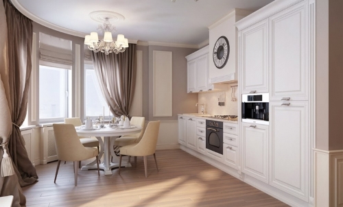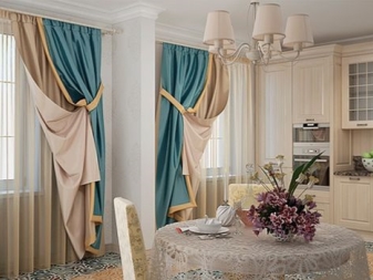 Aber für Classics wäre Tüll mit Lambrequin die perfekte Lösung. Es kann eine Vielzahl von Formen haben: Wellen, Halbkreise, Falten, Peroxide, usw. Die Hauptsache ist, dass ein Lambrequin mehrere komplexe Elemente haben kann, wenn ein Raum große Dimensionen hat.