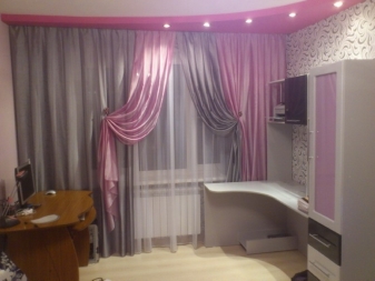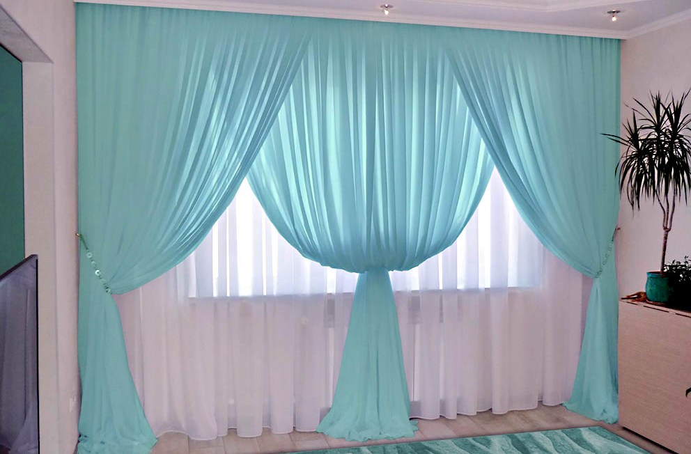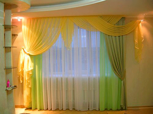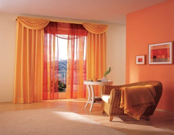 Oft werden mehrere Fenstervorhänge zum Dekorieren von Fenstern verwendet. Um nicht mit der Wahl verwechselt zu werden, ist es notwendig, sie so zu wählen, dass eine von ihnen die Farbe der Wände wiederholt.