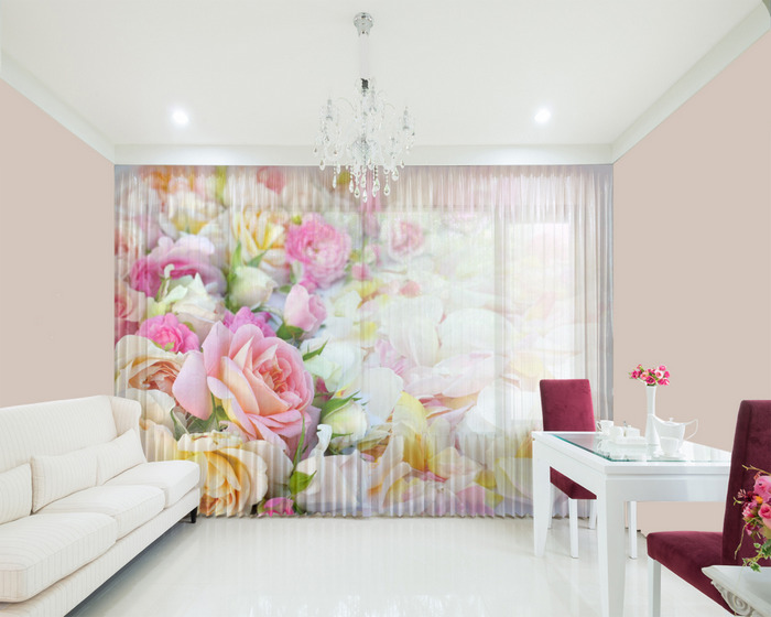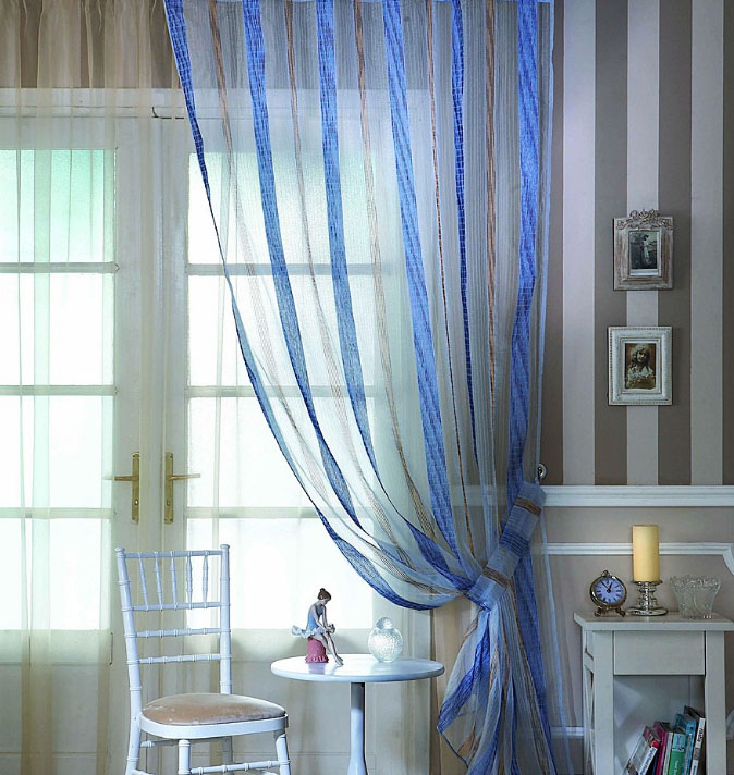 Die Leichtigkeit und Transparenz des Materials beeinflusst seine Elastizität und Festigkeit nicht. Solche Vorhänge besitzen Verschleißfestigkeit und die große Betriebsdauer.