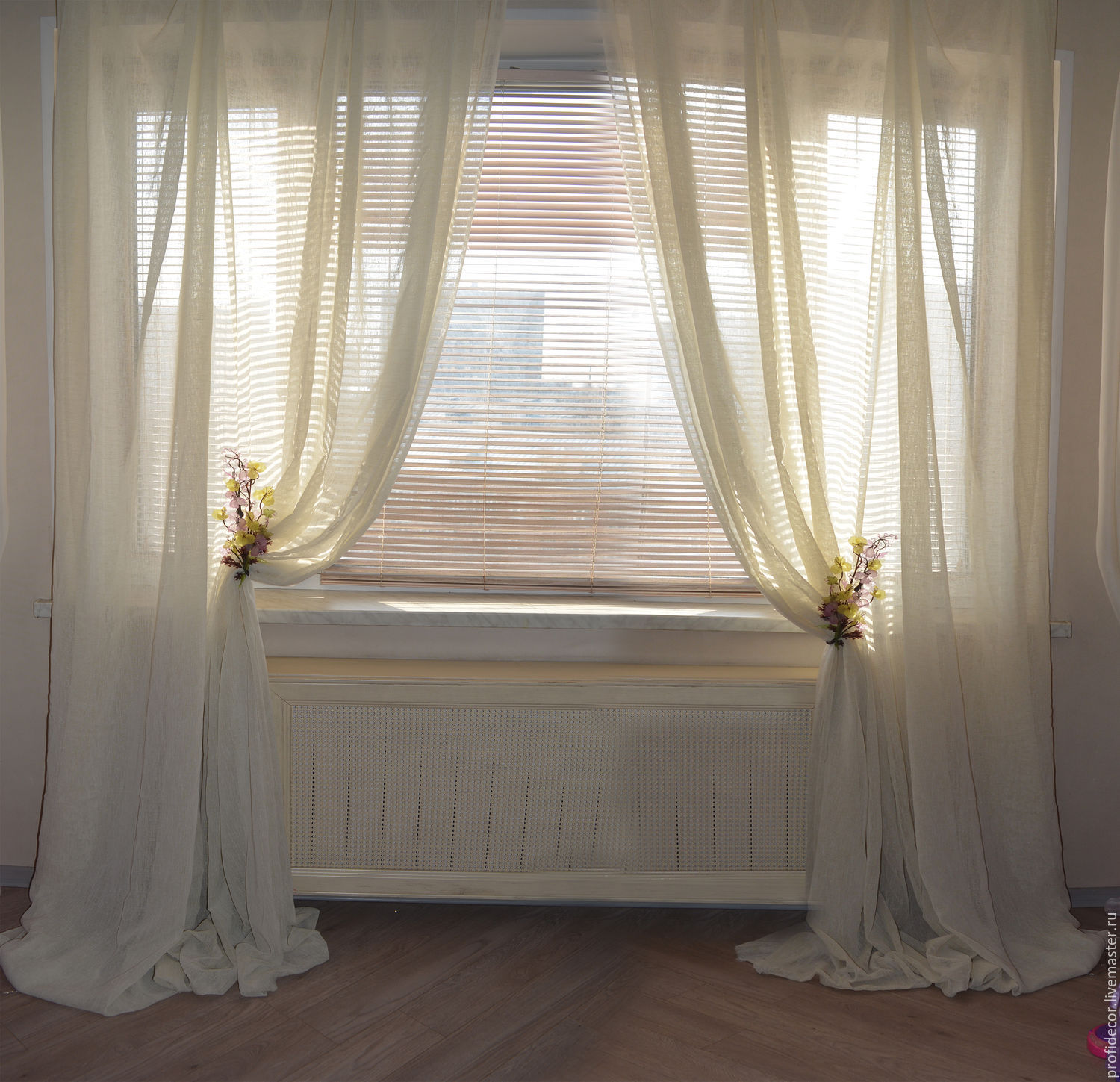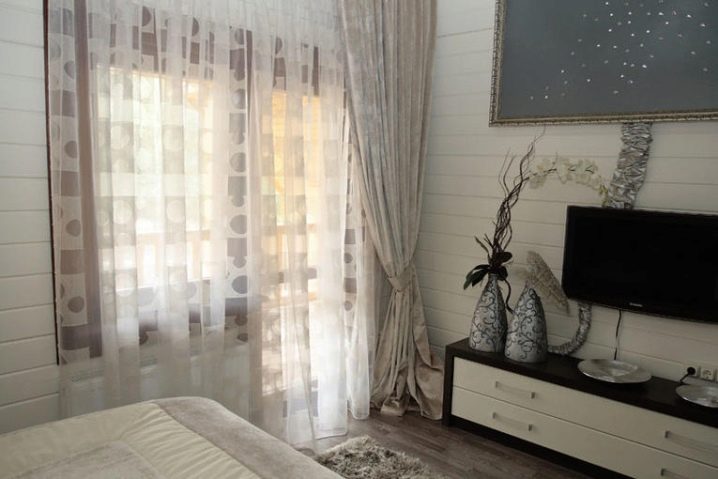 Der Schleier ist eine lichtdurchlässige Leinwand mit einer matten Oberfläche, die glatt ist. Die dichte Struktur des Schleiers ist in der Lage, kleine Defekte in der Reparatur eines Raumes zu verbergen, die zum Beispiel bei der Fertigstellung von Wänden oder einer Fensteröffnung entstehen. Es wird auch helfen, einen unangenehmen Blick vor dem Fenster vor den Augen zu verbergen.