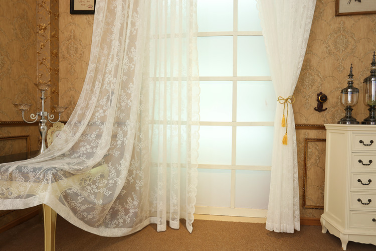 - Durchbrochener Tüll von synthetischen Fasern werden immer häufiger zum Dekorieren von Fenstern verwendet. Die Spitzenstruktur der Leinwand kann Raffinesse und ein Gefühl von Luxus sogar zu einem bescheidenen Raum hinzufügen.
