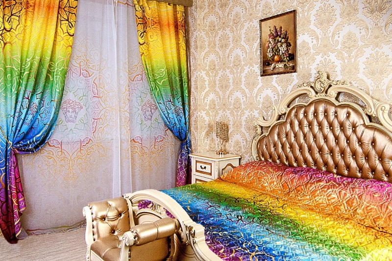 - Mehrfarbiger Vorhang wird ein Kinderzimmer schmücken, der Regenbogen wird kein Kind gleichgültig lassen. Der Vorhang in einem mehrfarbigen Streifen wird zum Highlight im Kinderzimmer.