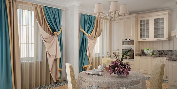 - Vorhänge bis zur Decke bestimmt für die Küche oder das Badezimmer und haben erhöhte Praktikabilität, weil sie für Verschmutzung weniger anfällig sind.