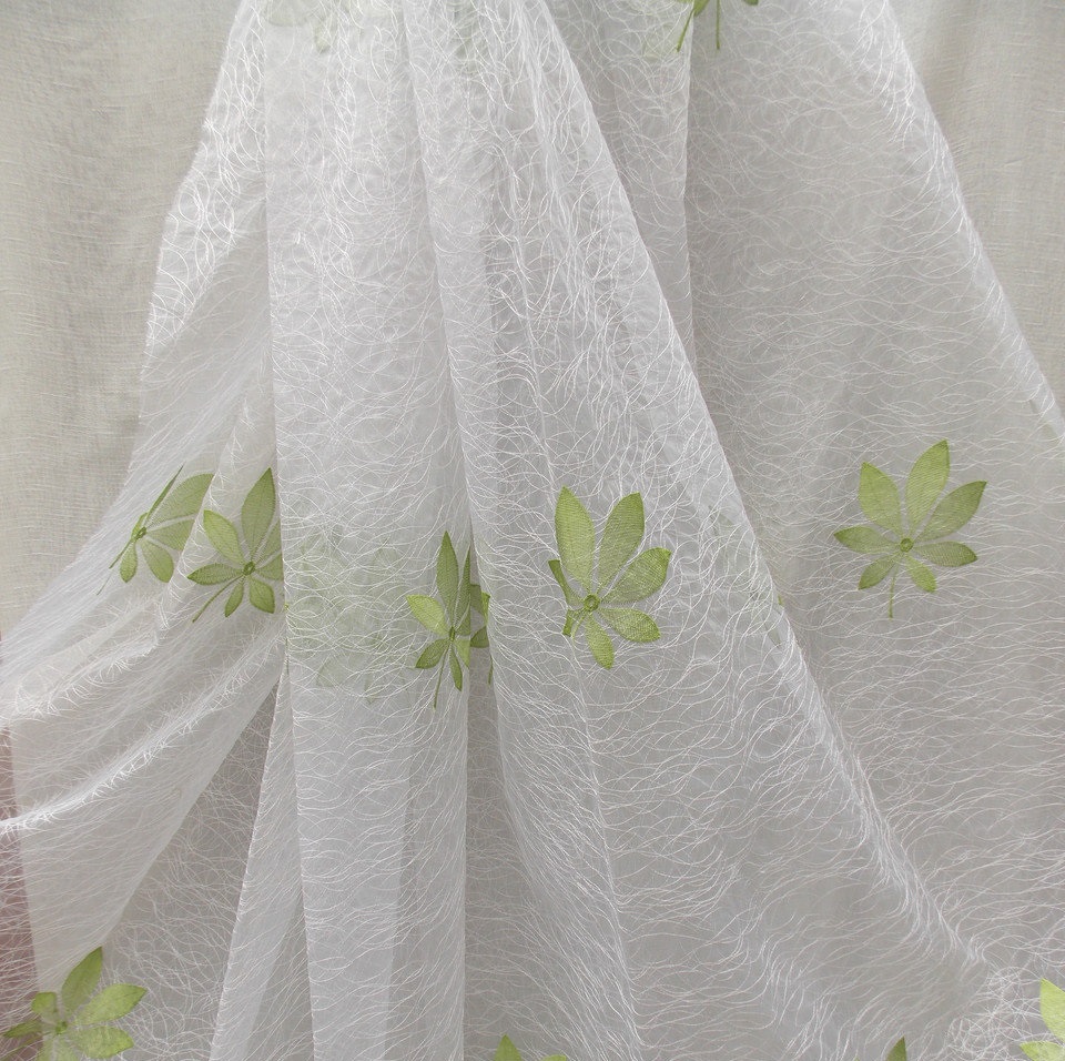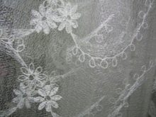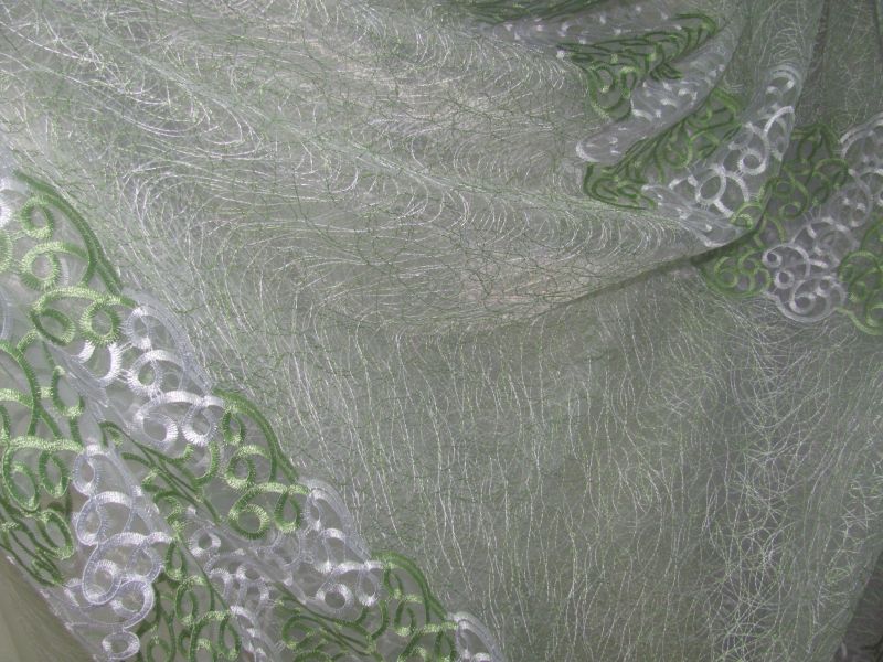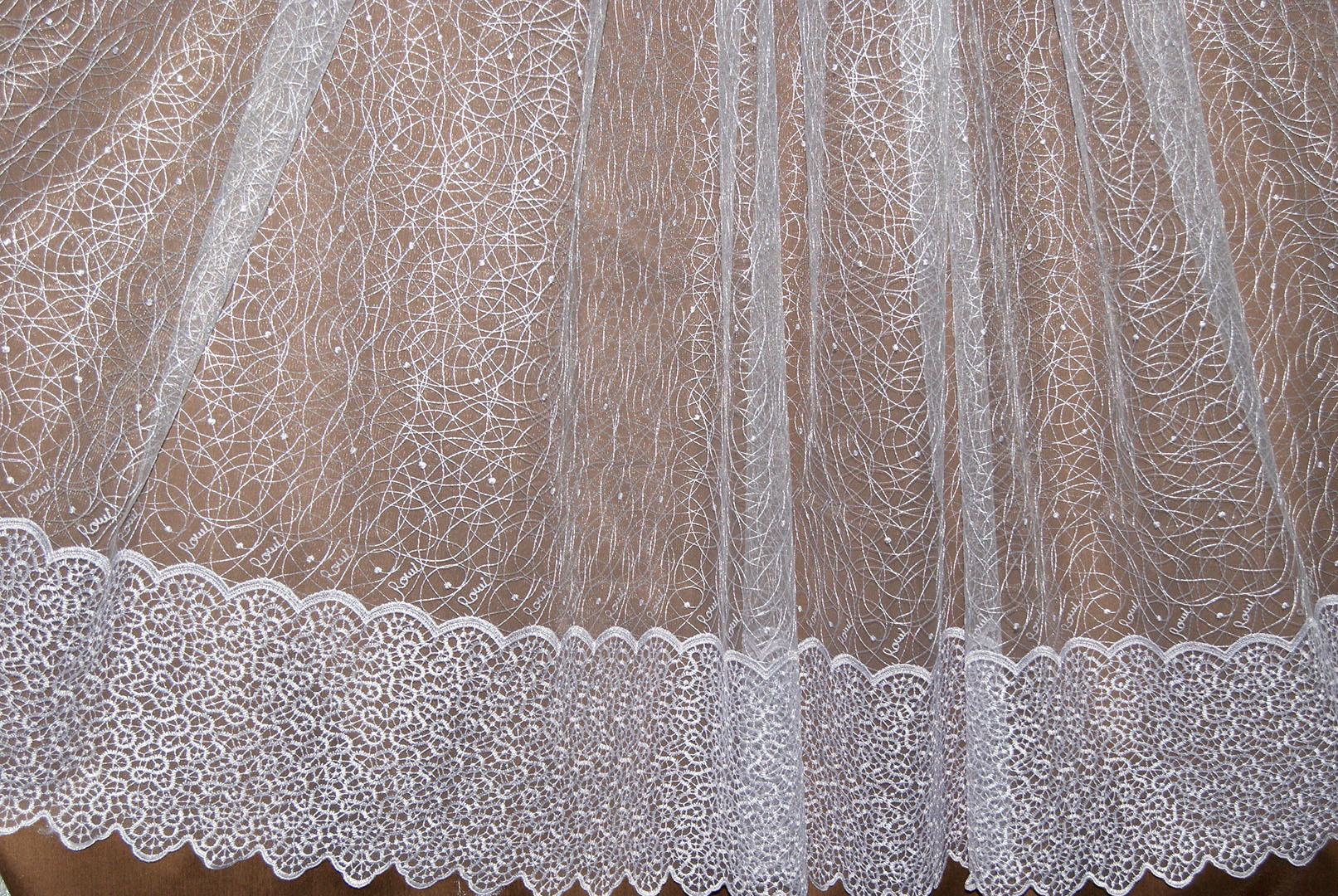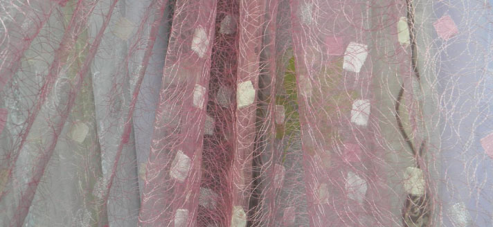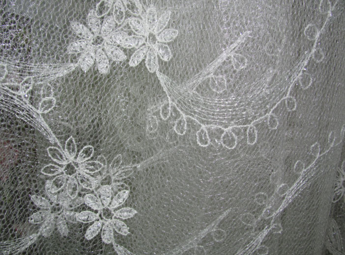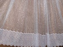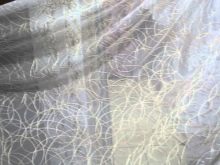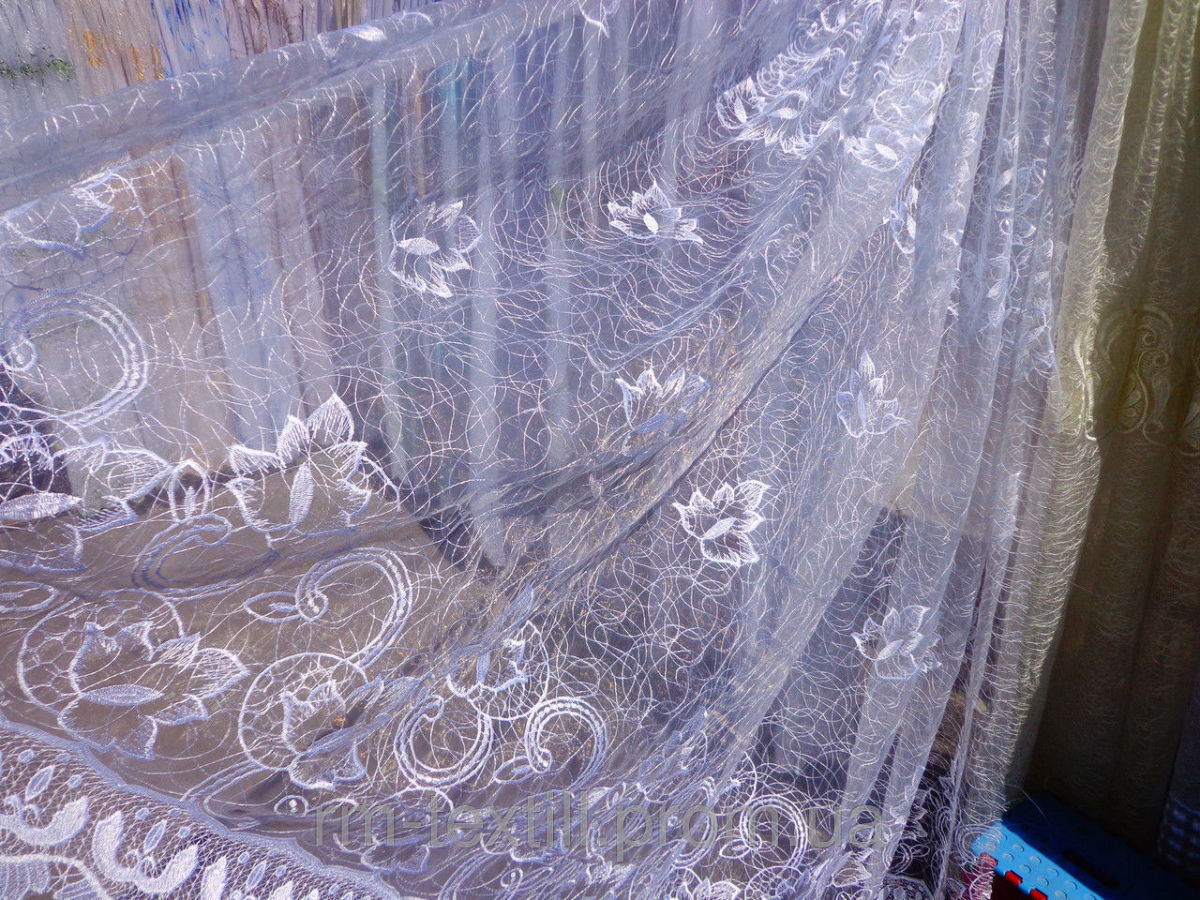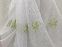 Zartes "Web" Tüll sieht im Innenraum sehr beeindruckend aus. Es ist aus ineinander greifenden Fäden und wirkt ungewöhnlich leicht, schwerelos und elegant. Es scheint, dass die Threads auf der Leinwand ohne ein bestimmtes Konzept liegen. Allerdings ist alles viel komplizierter. Die dünnsten Maschen werden in einem Kreis / einer Spirale genäht, wodurch ein Netzeffekt erzeugt wird.
