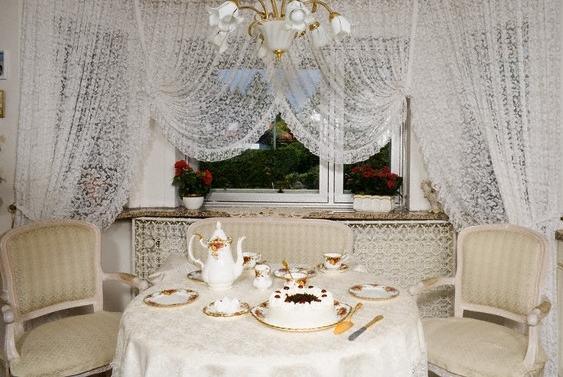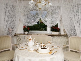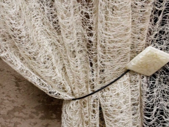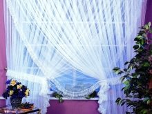 Tatsächliches Tüll "Web" wird in der Home-Anwendung sein - zum Beispiel in der Küche, im Schlafzimmer. Dies ist eine einzigartige Art von Produkt, das eine Dekoration des Designs sein kann. Die positive Eigenschaft eines solchen Produkts ist, dass das Material keinen Staub anzieht, so dass es im Kinderzimmer verwendet werden kann.