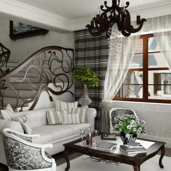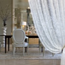 - Für modernen Minimalismus und originellen Art-Deco-Stil Tüll ist sehr schwer zu bekommen, aber es ist möglich: in der Regel sind dies geometrische Design-Designs, Sonderanfertigungen in speziellen Geräten;
