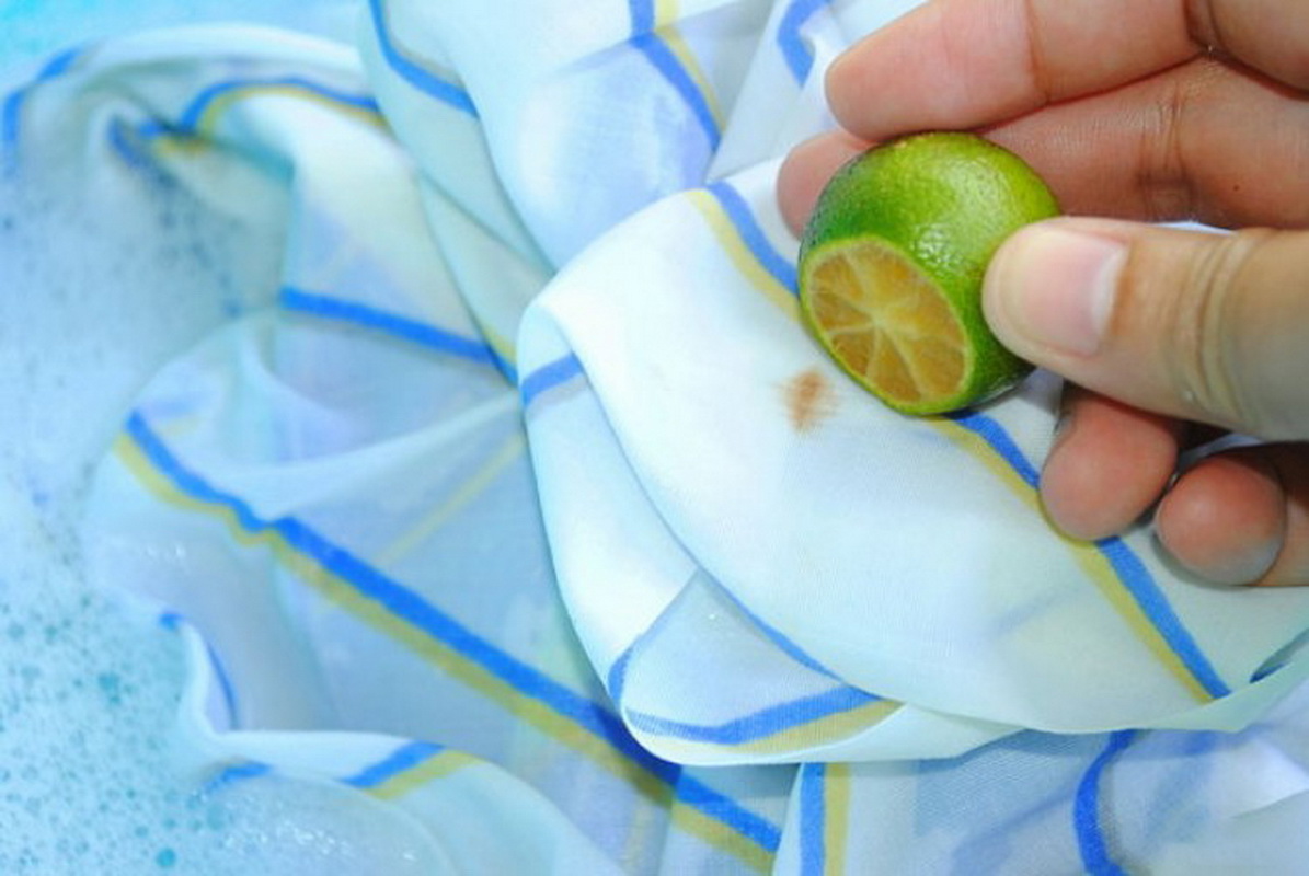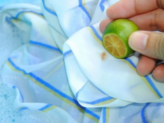 - Entfernen Sie Rost von einem weißen Tuch, indem Sie heißen Zitronensaft auf eine Stelle fallen lassen und nachdem das Gewebe in warmem Wasser unter Zugabe von Ammoniak gespült wurde. Ein rostiger Fleck wird von einem farbigen Vorhang entfernt, indem eine Mischung aus Glycerin, Wasser und Seifenstücken darauf aufgetragen wird (alle Produkte werden in gleichen Anteilen genommen, es ist ratsam, weiße Seife zu nehmen). Nach 24 Stunden ist der Fleck mit warmem Wasser bedeckt;