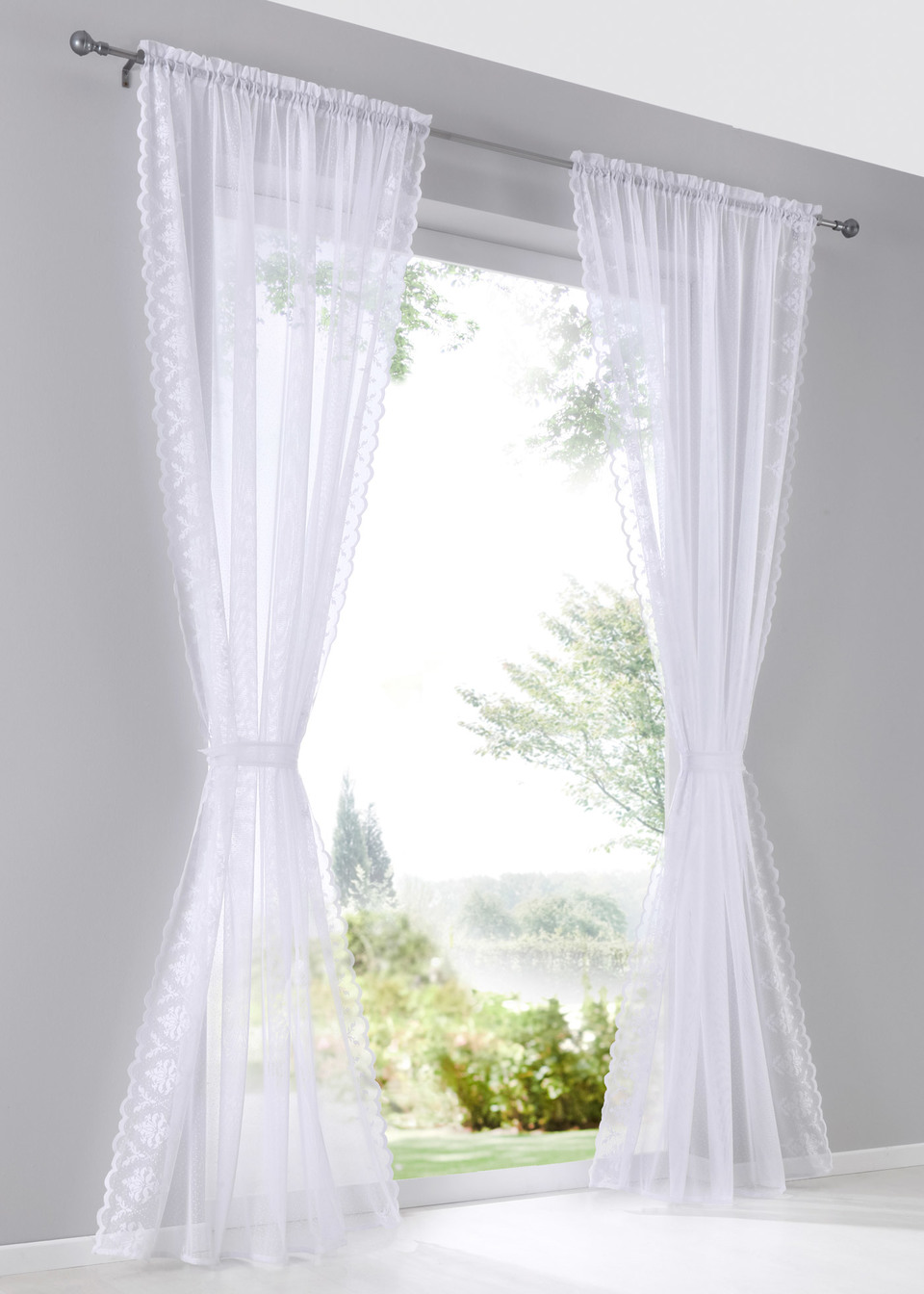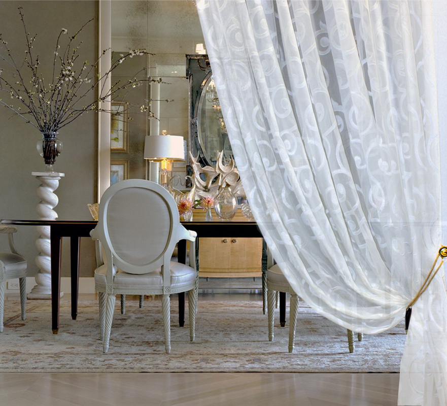 - Wohnzimmer Dekorieren Sie mit schickem weißem Tüll mit aufwendigen Mustern in Silber- oder Goldfäden. Kombinieren Sie es mit Vorhängen oder Vorhängen.