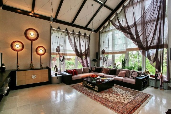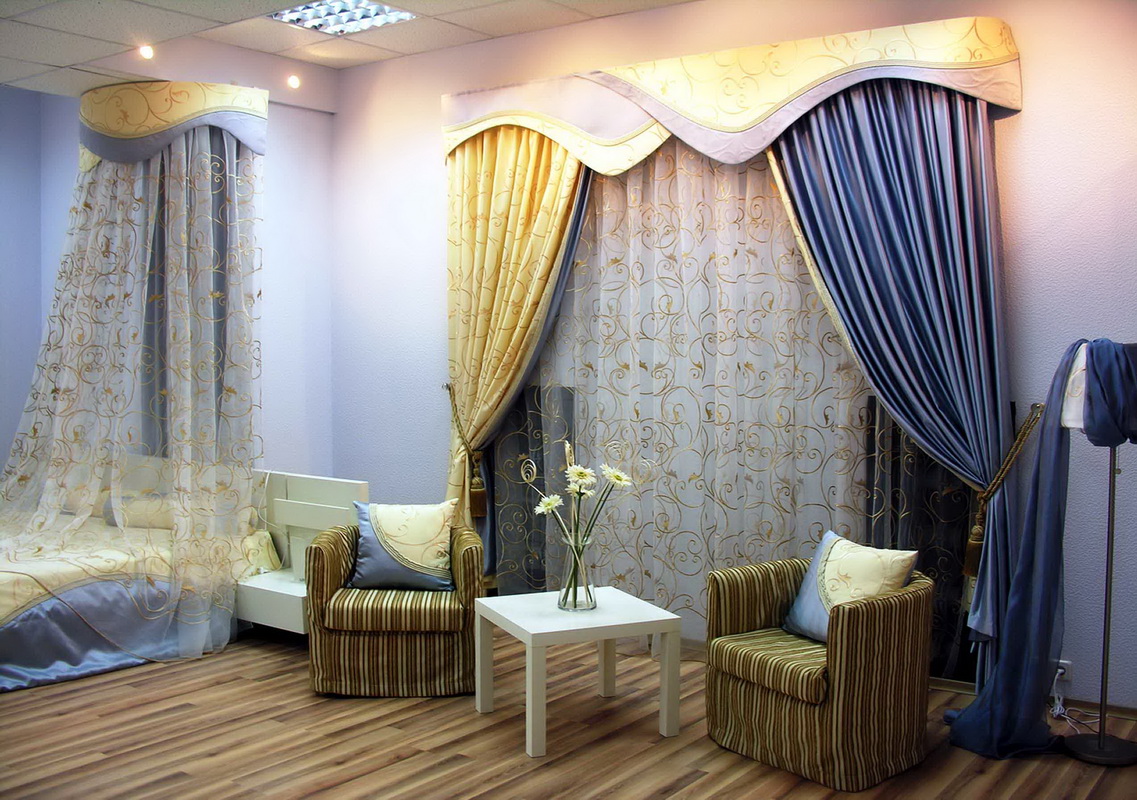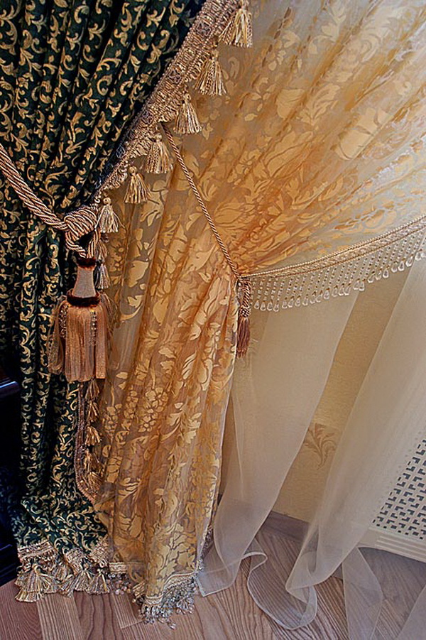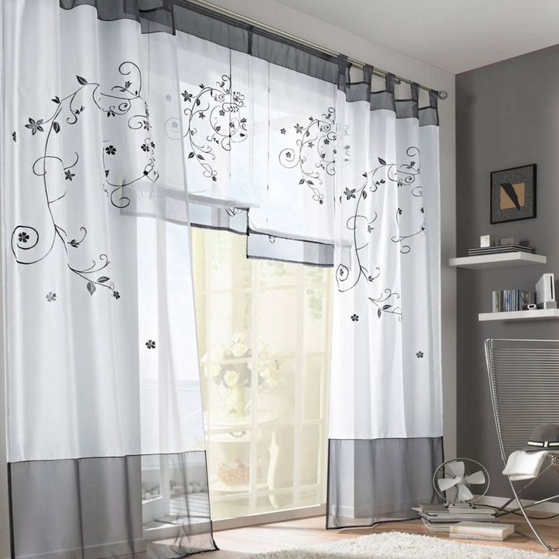 Vor ein paar Jahren war das ursprünglichste, was der Verbraucher bei der Wahl von Vorhängen für Fenster erwarten konnte, weißer Tüll mit einem unprätentiösen, unauffälligen Muster. Jetzt in Fachgeschäften und Websites finden Sie alles was das Herz begehrt! Farbe Tüll, Tüll mit Farbverlauf (Übergang von einer Farbe zur anderen), mit Strasssteinen verziert, mit Perlen und Glasperlen, Perlen und Bändern bestickt. Für die Stickerei werden nicht nur klassische Farben verwendet, wie Gold, Silber, Bronze, Weiß und Braun, sondern auch alle Farben des Regenbogens und sogar Schwarz.
