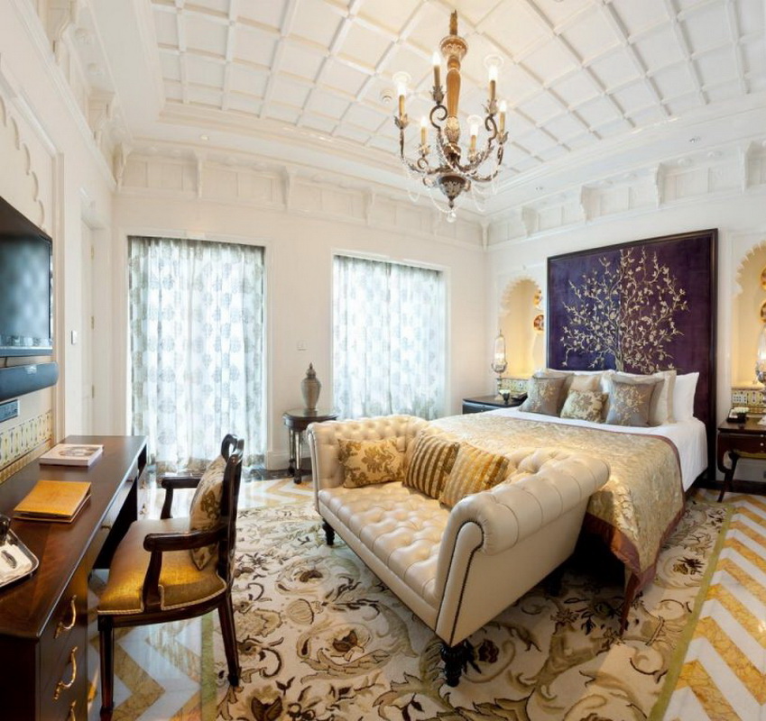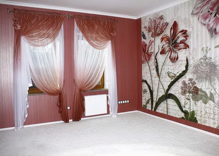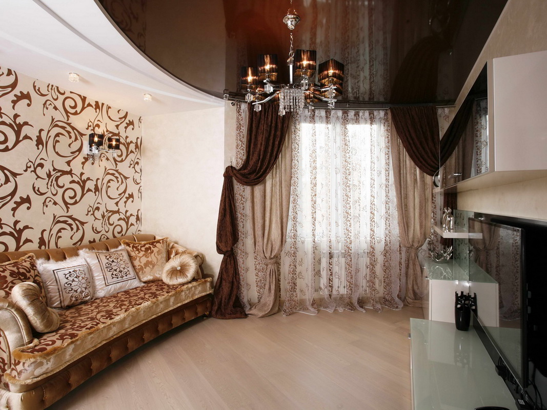 Bei der Wahl des Farbtons mit einem bestimmten Druck sollte nicht vergessen werden, dass er in erster Linie mit der allgemeinen Farbpalette des Raumes harmoniert und den notwendigen Hintergrund für das Interieur schafft.