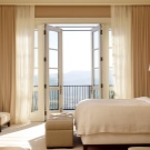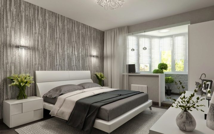 Für ein Schlafzimmer mit Balkon ist es besser, einfache Tüllvorhänge zu wählen, damit Sie die Balkontür einfach benutzen können. Es muss eine ausreichende Menge an Licht passieren, besonders wenn der Balkon verglast ist.