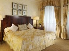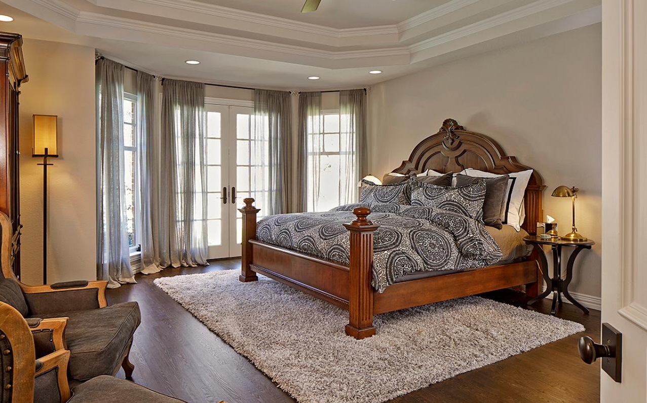 Für große Räume sind Vorhänge mit einem großen Muster, geometrischen oder floralen Ornament geeignet. Große Schlafzimmer haben oft Panoramafenster, für die ein großer Druck nicht besser sein könnte.