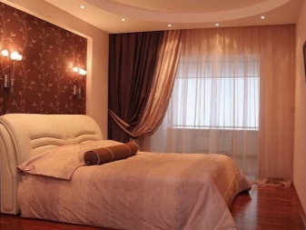 Die kombinierte Option - Vorhänge aus Tüll zwei Farben. Mit Hilfe dieser Vorhangkomposition ist es möglich, das Innere des Schlafzimmers schnell zu aktualisieren. In einem kleinen Schlafzimmer ist es besser zu wählen, die Vorhänge sind nicht zu sperrig und lang. Kurze Tüllvorhänge, die die Fensterbank nicht abdecken, sind gut.