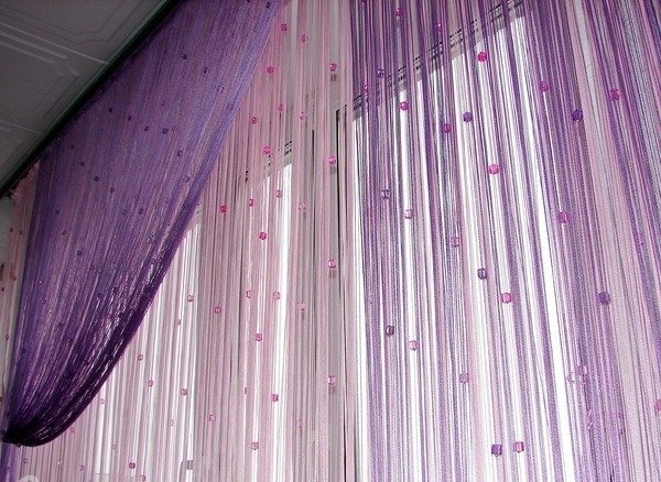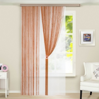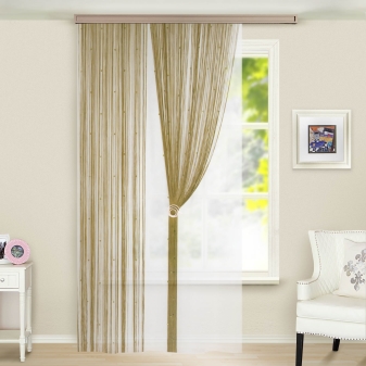 - Kisey. Moderne Alternative zu Tüll. Ansonsten heißen diese Vorhänge Baumwoll-Tüll. Es ist ein separater langer Faden, der entlang der Fensteröffnung hängt, manchmal ineinander verschränkt. Kiseyu wird oft als dekorative zweite Schicht verwendet.