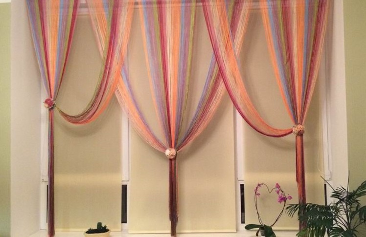 Kiseyu wird normalerweise als Dekor verwendet: Über dem weißen transparenten Tüll hängen farbige Kisyu. Es gibt viele verschiedene Ideen, wie man die zweite Schicht verwenden kann: Sie können diese Fäden auf verschiedene Arten binden, sie effektiv weben, sie verändern, Knoten bilden, Podlvaty und Magnete anwenden.