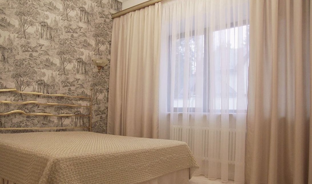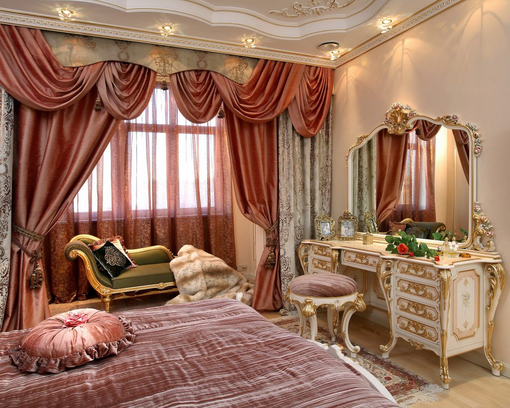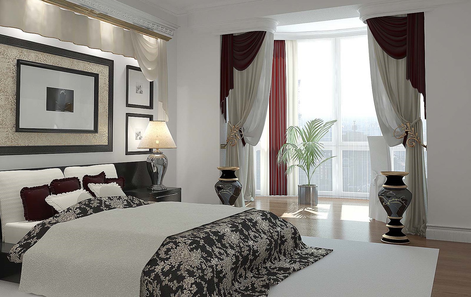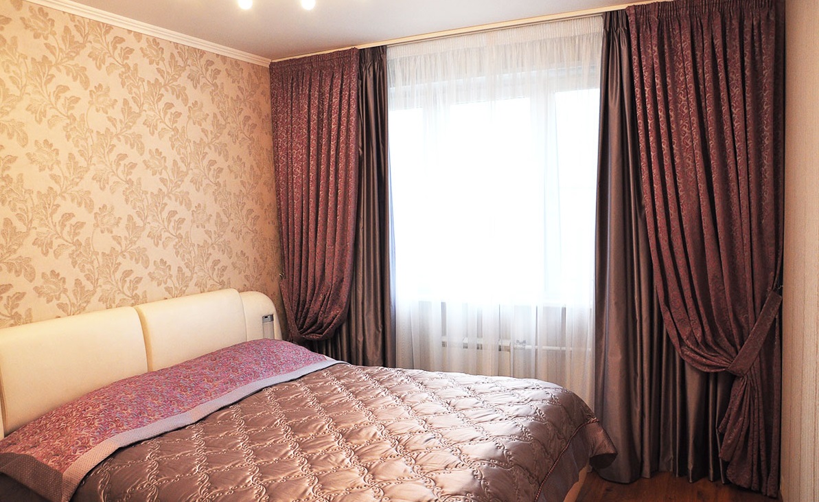 Für das Innere des Schlafzimmers ist es wichtig, die richtigen Vorhänge zu wählen.