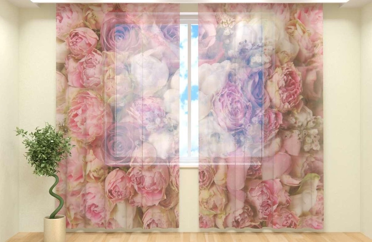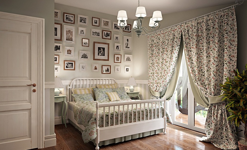 - Land Fensterdekoration in diesem Stil ist mit floralen Mustern oder Mustern in Pastellfarben verbunden. Es ist möglich, Vorhänge mit Rüschen oder Rüschen zu entwerfen. Wird oft in buntem Tüll verwendet, was eine für diesen Stil charakteristische Stimmung erzeugt.