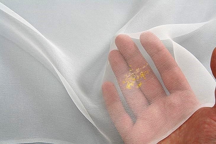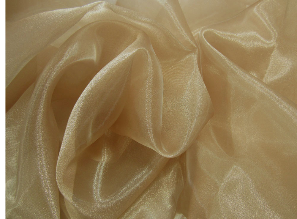 - Organza. Ein ziemlich elastisches Gewebe, das nicht nur eine gewisse Steifigkeit, sondern auch Transparenz und geringes Gewicht besitzt.Es ist brillant, mit bunten Tönen und matt. Der Stoff drapiert perfekt und erzeugt elastische Falten, die perfekt passen und die Form behalten. Das verwendete Rohmaterial ist Rayon-, Polyester- und Seidenfasern. Viele Arten von Oberflächen sind dafür verfügbar: Perforation, Stickerei, Vergoldung.