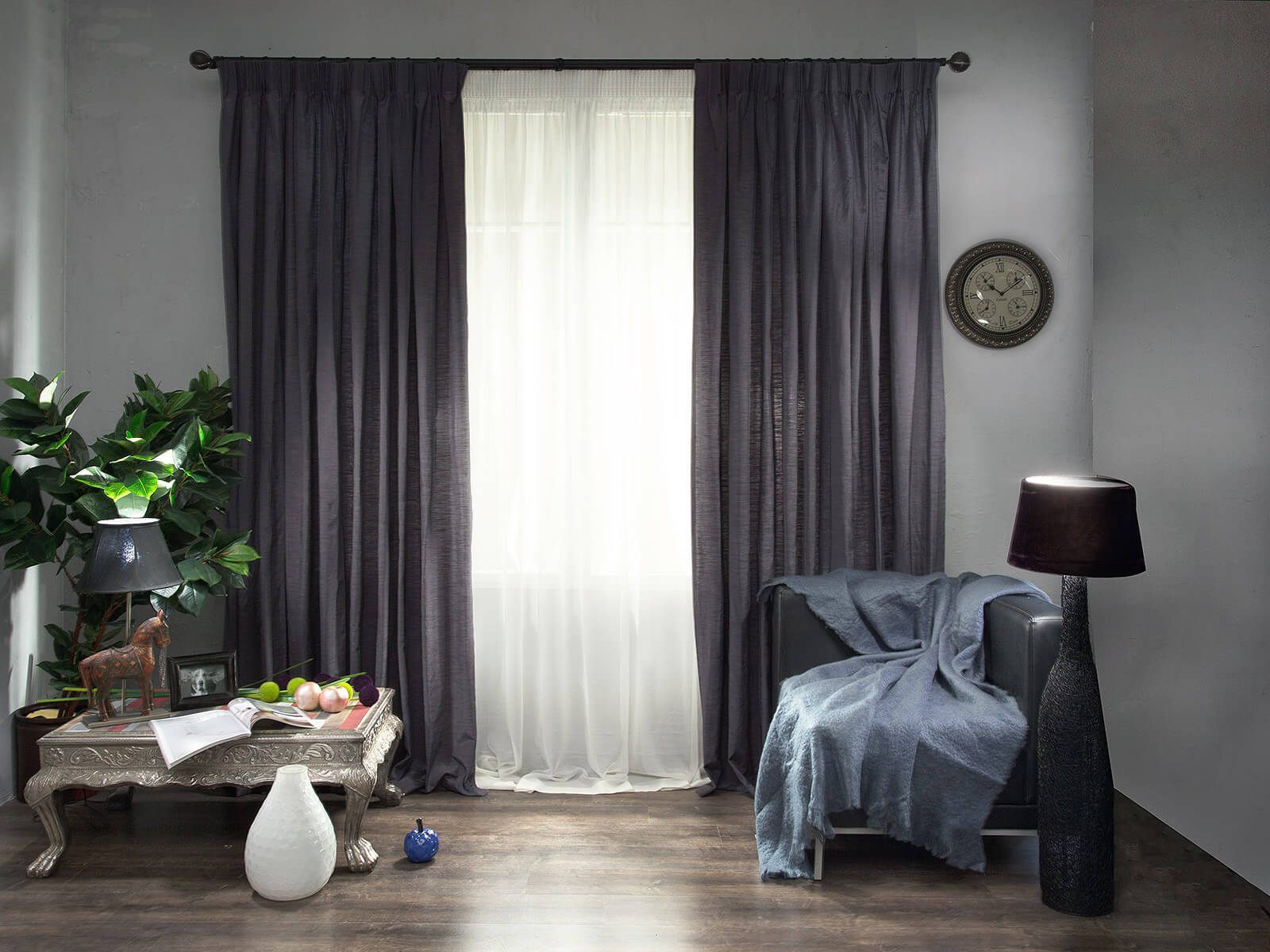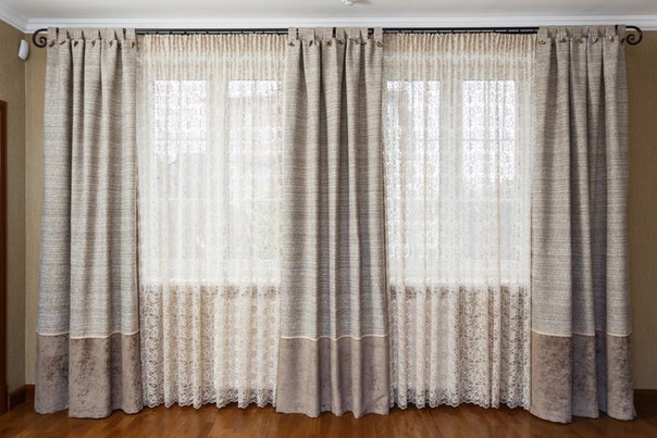 Die Umkehrung ist vorteilhaft, wenn der Vorhang dunkel und der Vorhang heller ist. Entweder ist innen ein dicker Vorhang aufgehängt, vor dem ein transparenter Stoff im Raum steht.