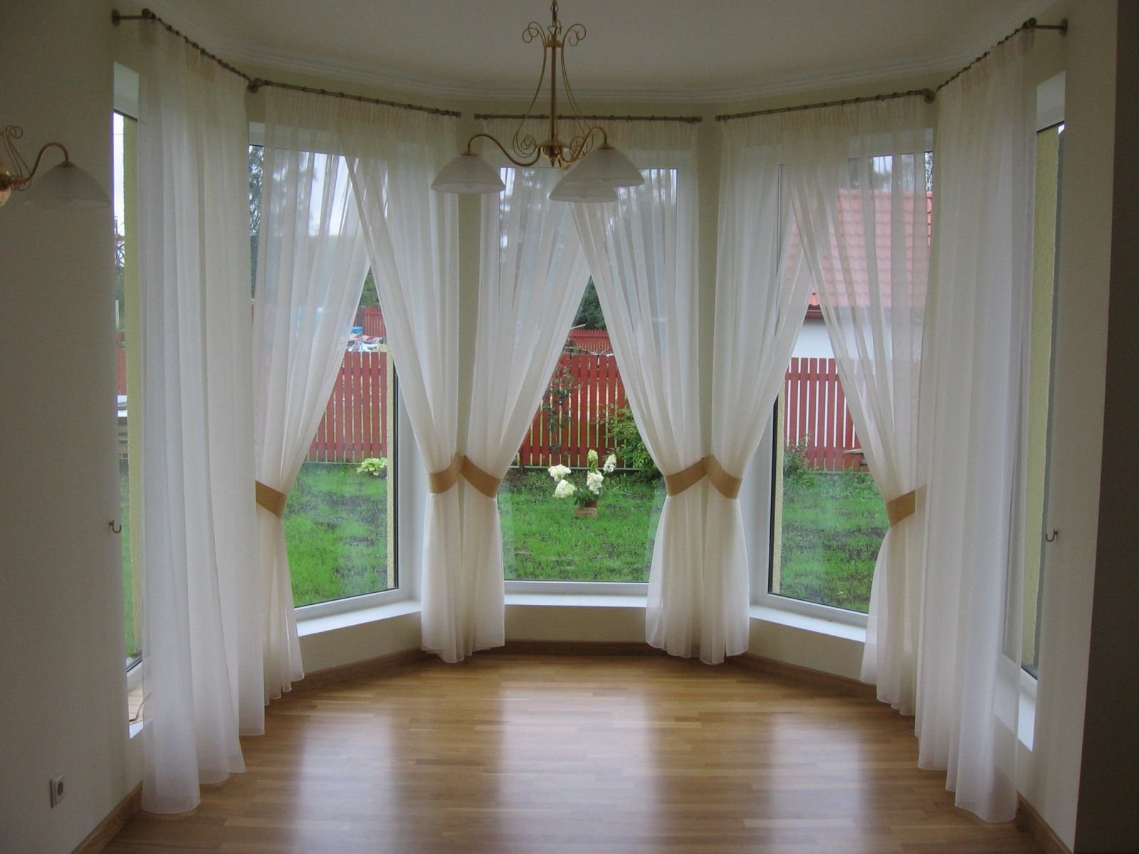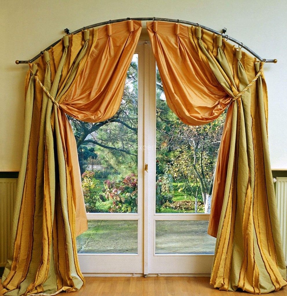 Die Fenster eines Privathauses lassen sich leicht verwandeln und viel eleganter gestalten, auch wenn sie aus Kunststoff sind. Es genügt, den Vorhang auf einer halbrunden Traufe aufzuhängen und auf beiden Seiten mit attraktiven Falten zu versehen.