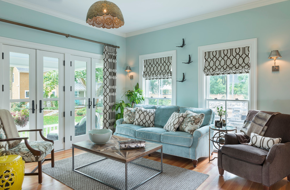 Eine solche Lösung wäre am besten für Wohnzimmer im Einklang mit Land, Strand und tropischen Stilen.