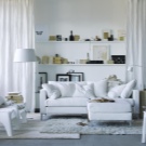 - Weiß - klassische Grundfarbe, betont Einfachheit und Natürlichkeit,. Er ist in der Lage, ein Gefühl der Freiheit zu geben, erhöht visuell das Raumvolumen, macht es leichter. Verschiedene Schattierungen von weiß können ebenfalls verwendet werden - hellgrau, hellbeige, Schnee, Perlmutt und andere;