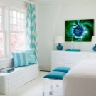 - Hellblau erhöht visuell den Raum, macht das Sonnenlicht weicher, erzeugt ein angenehmes Gefühl von Kälte;