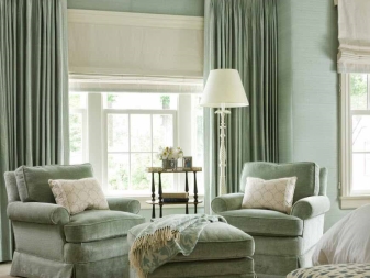 Zusätzliche dekorative Elemente in den Vorhängen dieses Typs werden normalerweise nicht verwendet. Das Fehlen von Rollos, Rüschen, Schnürsenkeln und Fransen macht Gardinen einfach, zart, aber gleichzeitig sehr stilvoll und modern.