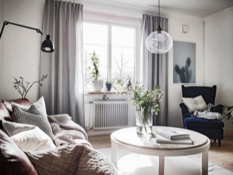 Wenn Sie sich nicht entscheiden können, welche Vorhänge zu Hause aufgehängt werden sollen, damit sie in das Interieur passen, empfehlen wir Ihnen Produkte im skandinavischen Stil zu wählen. Es repräsentiert die Dominanz von Weiß und allen hellen Tönen.