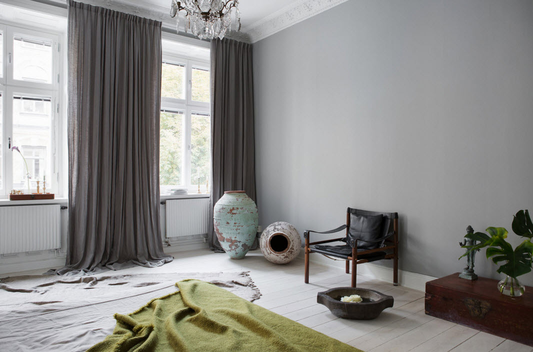 Natürliches Licht ist sehr wichtig, wenn Sie das Innere irgendeines Raumes planen., und dies gilt besonders für die Bewohner der nördlichen Hemisphäre, da es nicht so viele helle, sonnige Tage gibt und sie versuchen, jeden Lichtstrahl zu fangen, wählen sie niemals schwere schwere Vorhänge. Vorhänge im skandinavischen Stil sollten hingegen die Raumbeleuchtung verbessern.