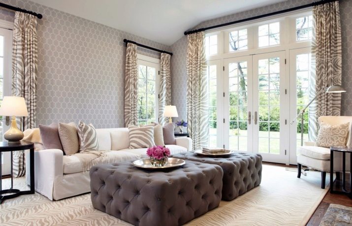 In einem schönen und gemütlichen Wohnzimmer sollten die Vorhänge auch leicht sein, Sie werden ein Gefühl von Volumen und Schwerelosigkeit schaffen. Daher ist es nicht notwendig, die Vorhänge mit massiven Vorhängen, Falten und anderen dekorativen Elementen zu belasten.