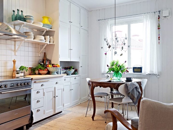 Scandinavian Vorhänge im Inneren der Küche werden angemessen sein, da es sicherlich gemütlich und sehr leicht sein muss, und lichtdurchlässige Vorhänge werden die beste Lösung dafür sein.