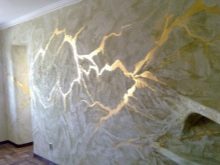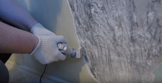 Qualitativ bereiten Sie die Wand mit ihren dekorativen Materialien mit einer speziellen Reibe auf Dekoration vor.