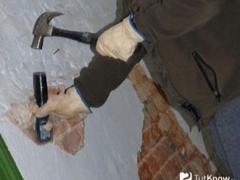 - Wenn sich unter der Putzschicht eine Trockenmauer befindet, ist es notwendig, vorsichtig zu streichen, ohne zu viel Kraft anzuwenden. Die Demontage erfolgt am besten mit einem Hammer mit einem Pflücker oder einer Kelle.